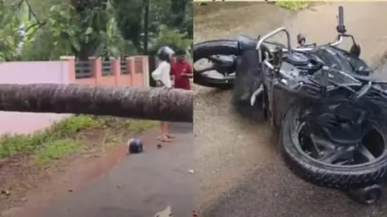 റോഡിന് കുറുകെ വീണുകിടന്ന തെങ്ങിൽ ബൈക്ക് ഇടിച്ചു; യ...
