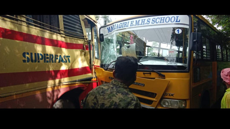 കെഎസ്ആർടിസി സൂപ്പർ ഫാസ്റ്റും സ്കൂൾ ബസും തമ്മിൽ കൂട...