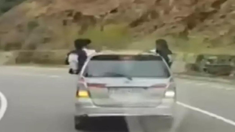 കൊച്ചി ദേശീയപാതയില് വിനോദ സഞ്ചാരികള് കാറിന്റെ ഡോ...