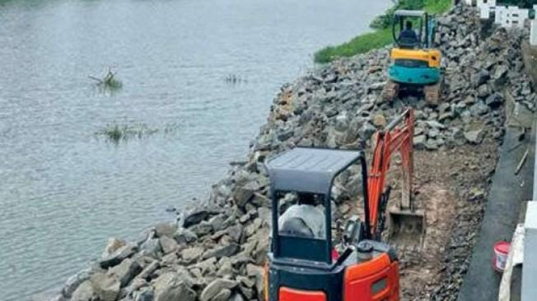 ചാലക്കുടിപ്പുഴയുടെ തീരം കരിങ്കല്ലടിച്ച് നികത്തുന്ന...