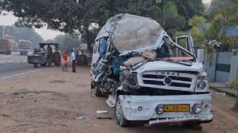 തടി ലോറിയും ട്രാവലറും കൂട്ടിയിടിച്ചുണ്ടായ അപകടത്ത...