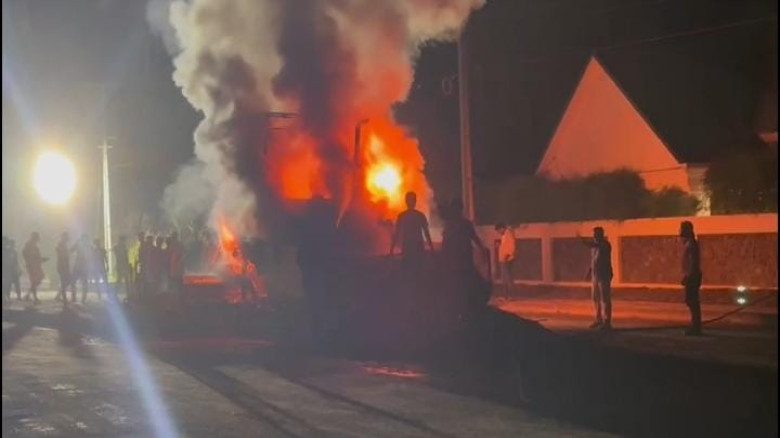 ദേശീയപാതാ നിർമാണത്തിനിടെ ടാറിംഗ് വാഹനത്തിന് തീപിടി...