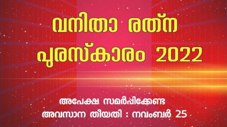 വനിതാരത്ന പുരസ്കാരത്തിന് അപേക്ഷ ക്ഷണിച്ചു...