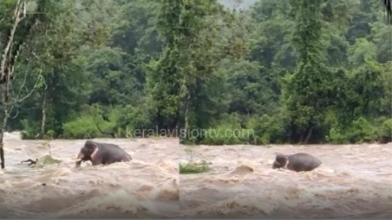 ചാലക്കുടി പുഴയിൽ ഒഴുക്കിൽപ്പെട്ട ആന കരകയറി...