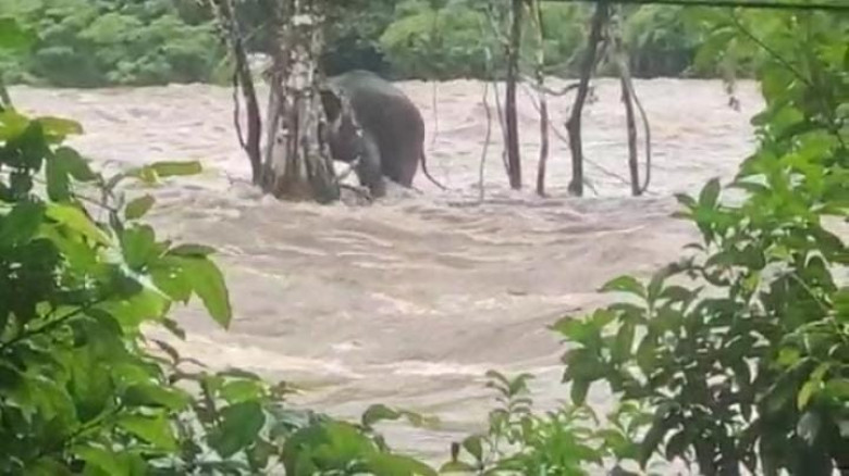 ചാലക്കുടി പുഴയിൽ ഒഴുക്കില്‍പ്പെട്ടു ആന കുടുങ്ങിക്ക...