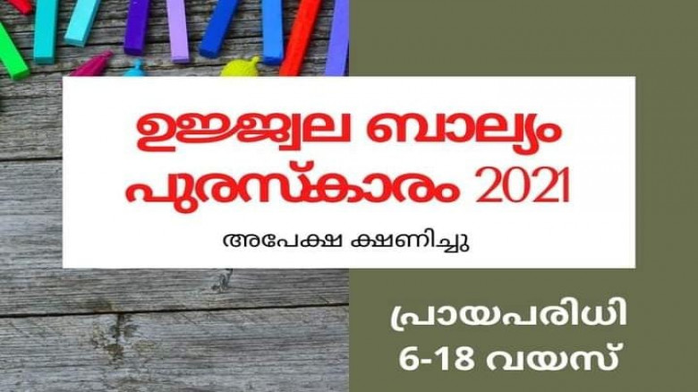 ഉജ്ജ്വല ബാല്യം പുരസ്കാരത്തിന് അപേക്ഷ ക്ഷണിച്ചു...