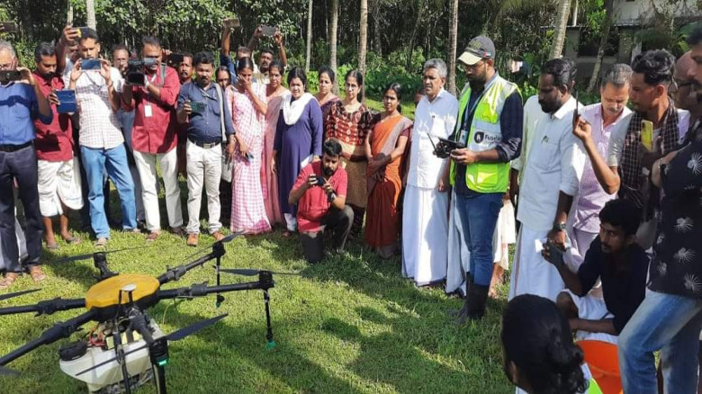 കൃഷി ജോലികൾക്ക് ആലത്തൂർ പാടശേഖരത്തില് ഡ്രോൺ പറന്...