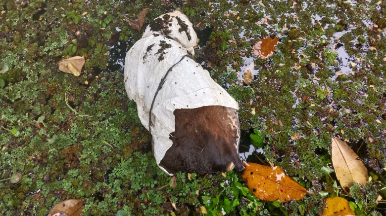ചത്തപശുവിനെ ചാക്കിൽക്കെട്ടി വഴിയരികിൽ തള്ളി...