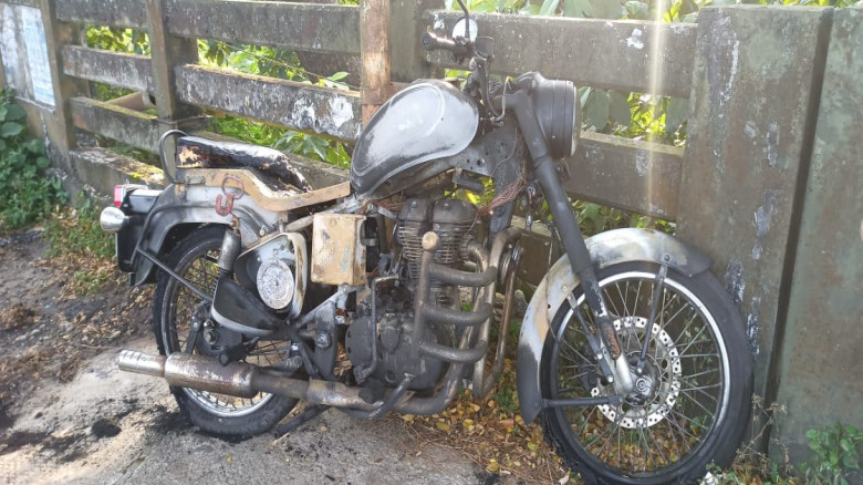 ഓടിക്കൊണ്ടിരുന്ന ബുള്ളറ്റ് കത്തിനശിച്ചു; ദമ്പതികൾ ...