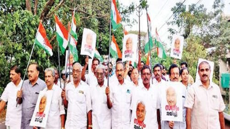 ഉമ്മൻചാണ്ടിക്ക് അഭിവാദ്യമർപ്പിച്ച് കോൺഗ്രസ് പ്രകടന...