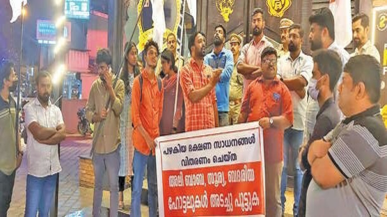 ഹോട്ടലുകൾക്ക് മുന്നിൽ ഡി വൈ എഫ് ഐ പ്രതിഷേധം...
