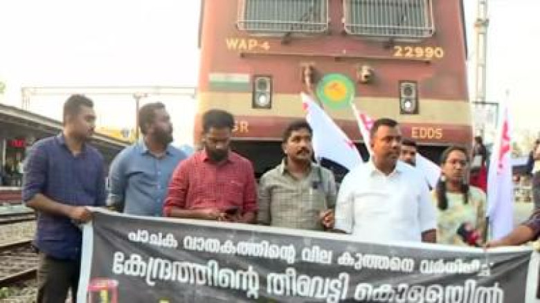 എൽപിജി വിലവർധന; ട്രെയിൻ തടഞ്ഞ് ഡി വൈ എ...
