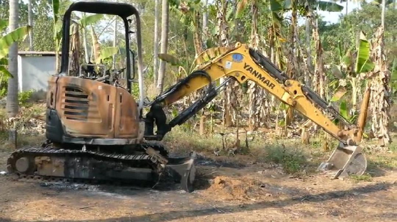 ആളൂരിൽ മണ്ണ് മാന്തിയന്ത്രം തീയിട്ട് നശിപ്പിച്ച നില...
