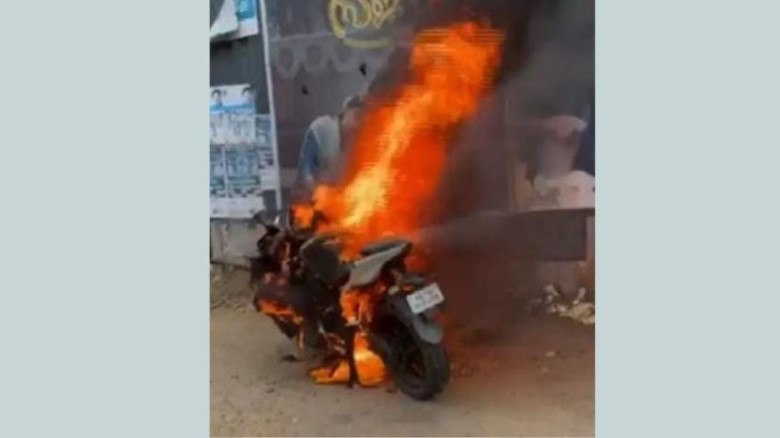 ആലുവ മാർത്താണ്ഡവർമ്മ പാലത്തിൽ ഓടുന്ന ബൈക്കിന് തീ പ...