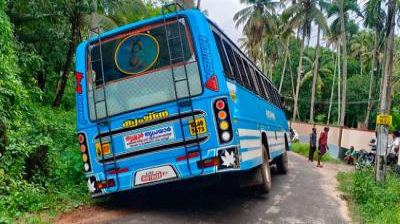 യാത്രക്കാരുമായി പോയ ബസ് റോഡിലെ കുഴിയി...