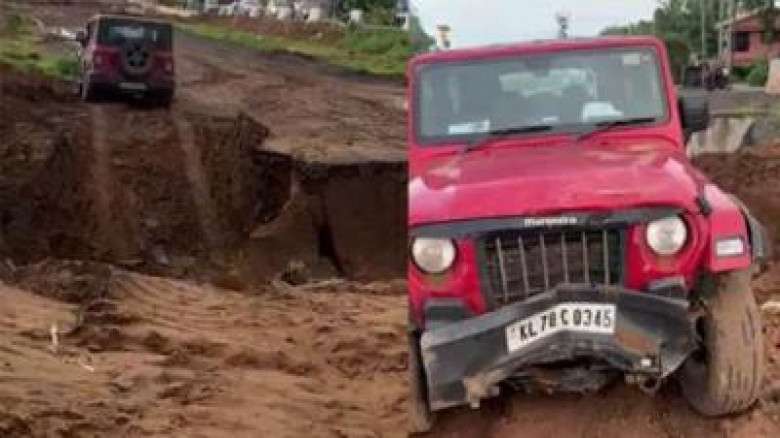 ജീപ്പ് ദേശീയപാതയിലെ കുഴിയിൽ വീണു; ഡ്രൈ...