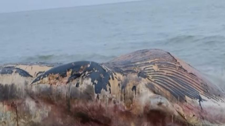 25 അടിയോളം നീളം; പെരിഞ്ഞനത്ത് തിമിംഗലത്തിന്റെ ജഡം ...