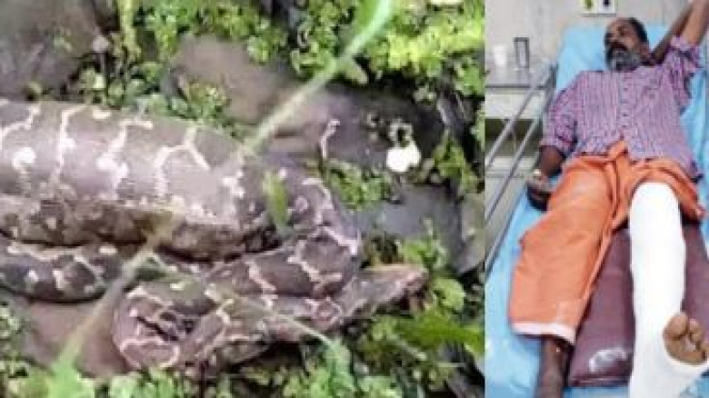 മലമ്പാമ്പിന്റെ ആക്രമണം, പുല്ലുവെട്ടു തൊഴിലാളിയുടെ ...