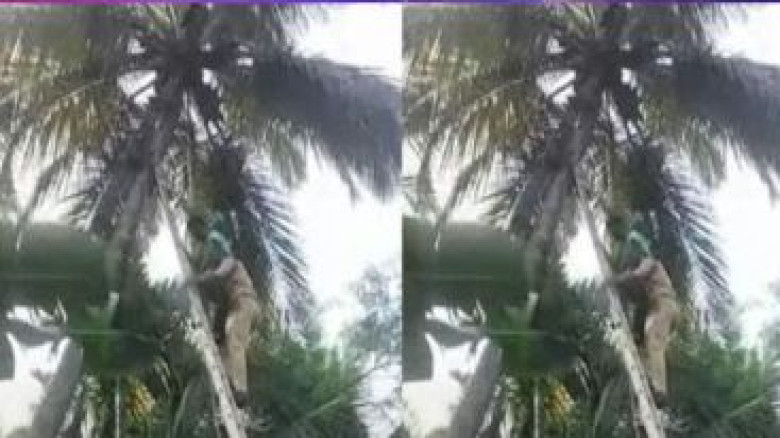 തെങ്ങുകയറുന്നതിനിടെ യുവാവ് കൈവിട്ട് തലകീഴായി മറിഞ്...