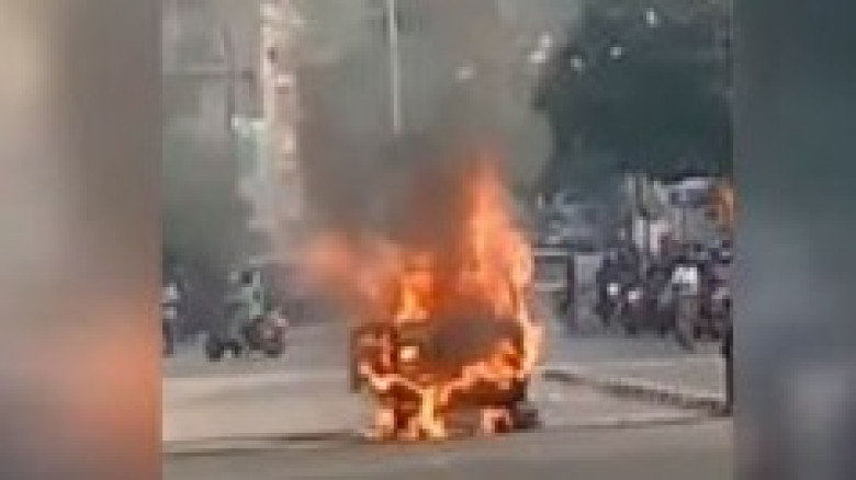 ഓടിക്കൊണ്ടിരുന്ന ഒമ്നി വാന് കത്തി; ഡ്രൈവര് പുറത...