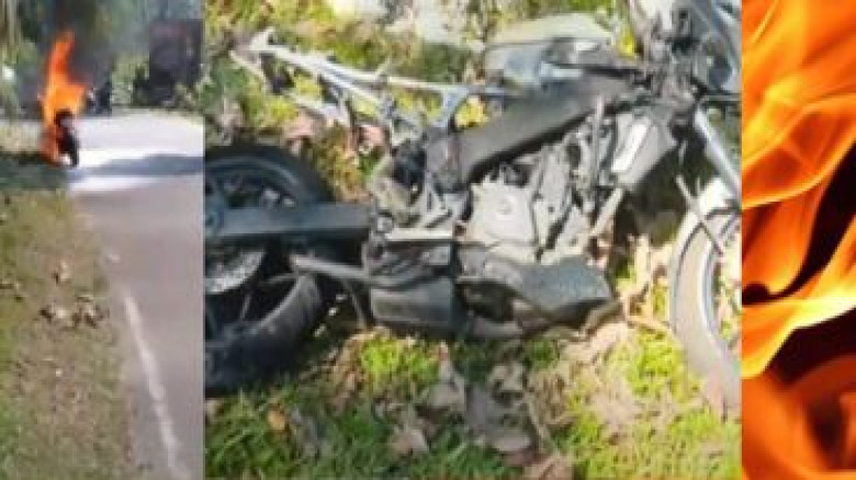 ഓടിക്കൊണ്ടിരുന്ന ബൈക്കിന് തീ പിടിച്ചു; വെള്ളം ഒഴിച...