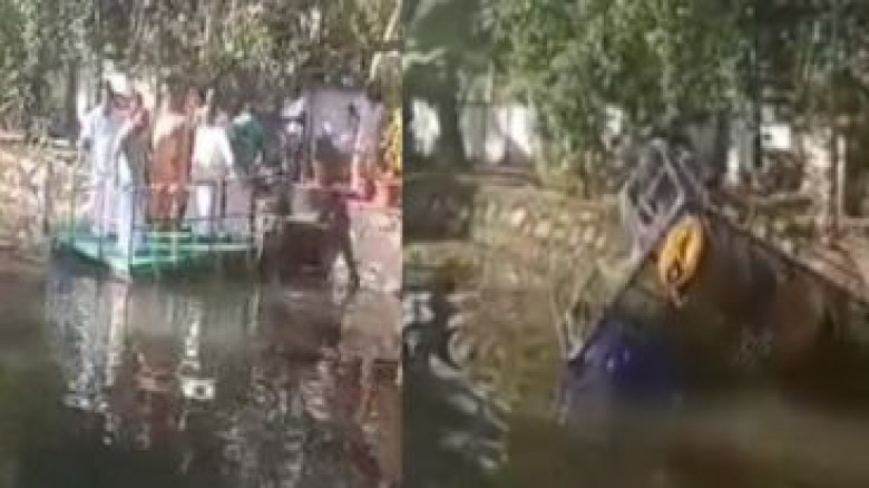 ഉദ്ഘാടനയാത്രയില് ചങ്ങാടം തലകീഴായി മറിഞ്ഞു; പഞ്ചായ...