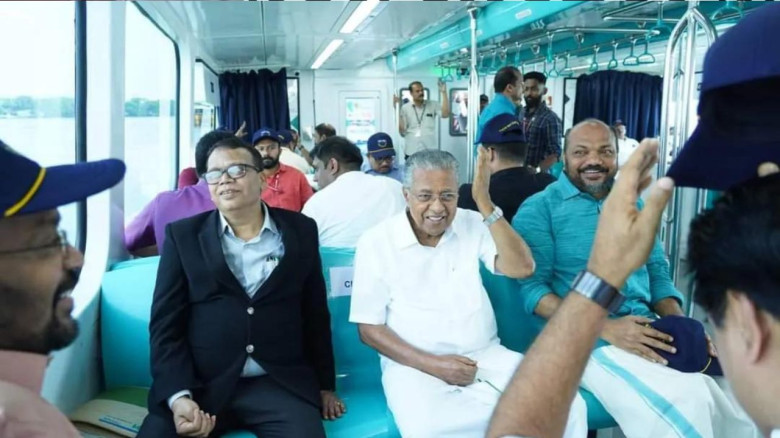 ആദ്യമായി വാട്ടര് മെട്രോയില് യാത്ര ചെയ്ത് മുഖ്യമ...