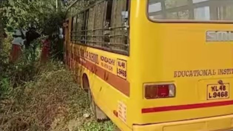 സ്കൂൾ ബസ് കനാലിലേക്ക് ചെരിഞ്ഞു; ദുരന്തം ഒഴിവായത് ത...