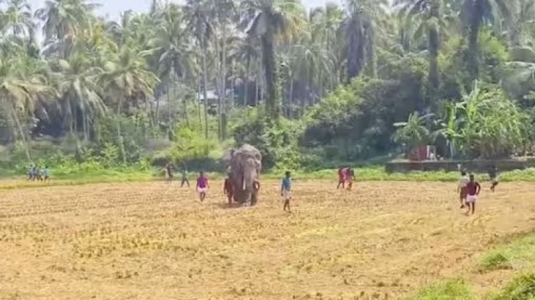 മുന്നിലെത്തിയ പോത്തിനെ കണ്ടു; കുന്നംകുളത്ത് ആന വിര...
