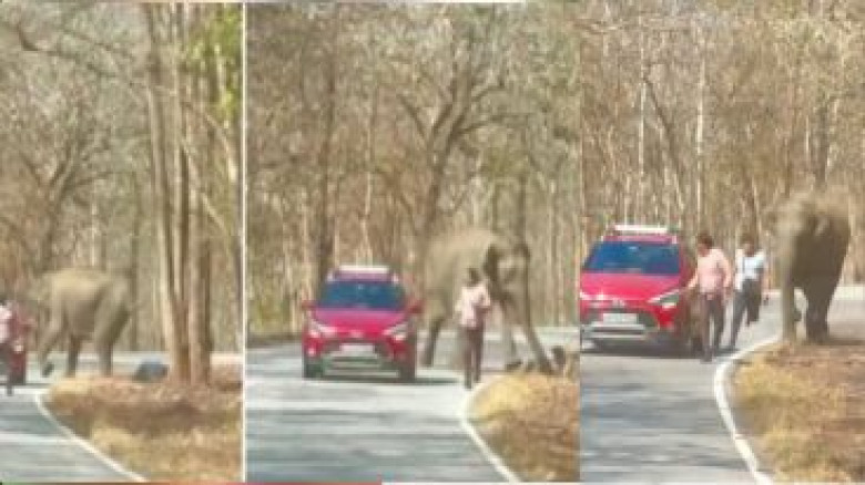 യാത്രക്കാര്ക്ക് നേരെ പാഞ്ഞടുത്ത് കാട്ടാന; രക്ഷപ്പ...