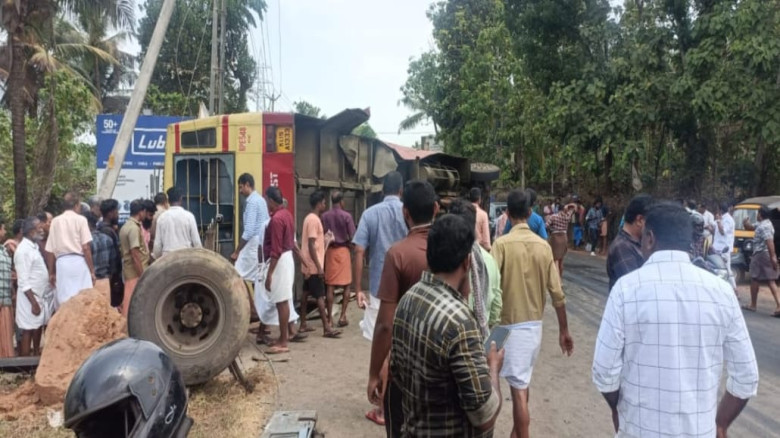 കോട്ടയത്ത് ബസ് തലകീഴായി മറിഞ്ഞു; നിരവധി പേർക്ക് പര...