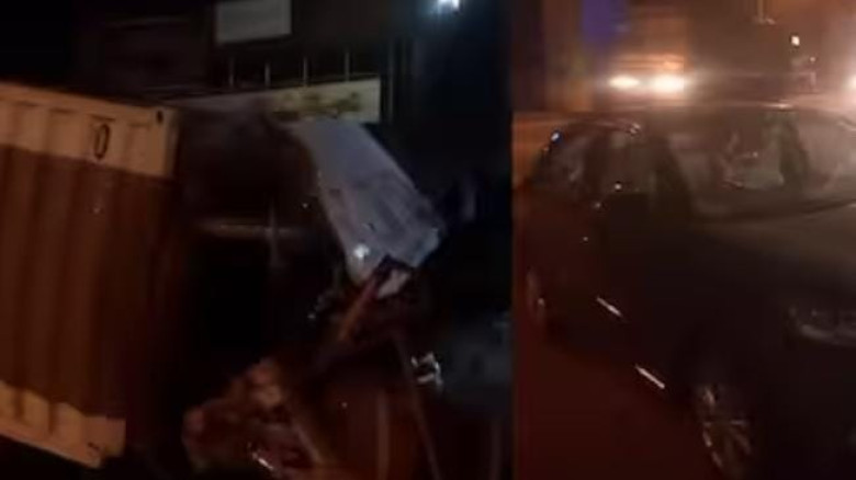 ആലുവയിൽ കണ്ടെയ്നര് ലോറി മെട്രോ തൂണിലേക്ക് ഇടിച...
