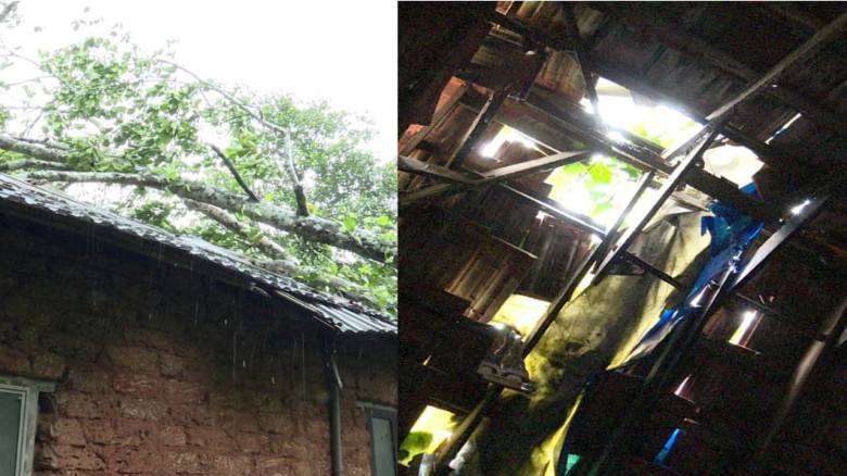കനത്ത മഴയിലും കാറ്റിലും മരം കടപുഴകി വീണ് വീട് ഭാഗ...