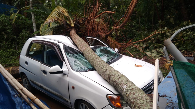 തെങ്ങ് വീണ് കാർ തകർന്നു...