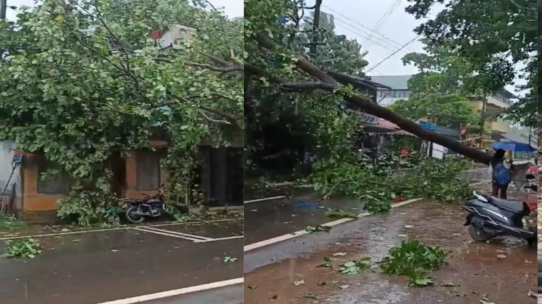 ശക്തമായ കാറ്റിലും മഴയിലും മരം വീണ് കടകൾ തകർന്നു...