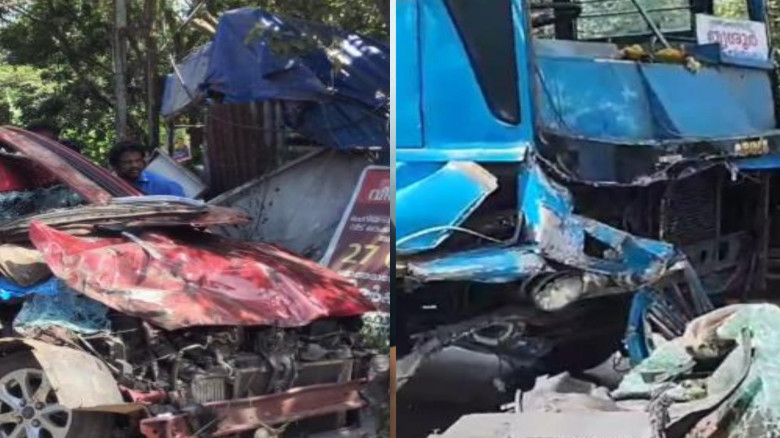കരുവന്നൂർ ചെറിയപാലത്തിൽ സ്വകാര്യ ബസും കാറും കൂട്ടി...