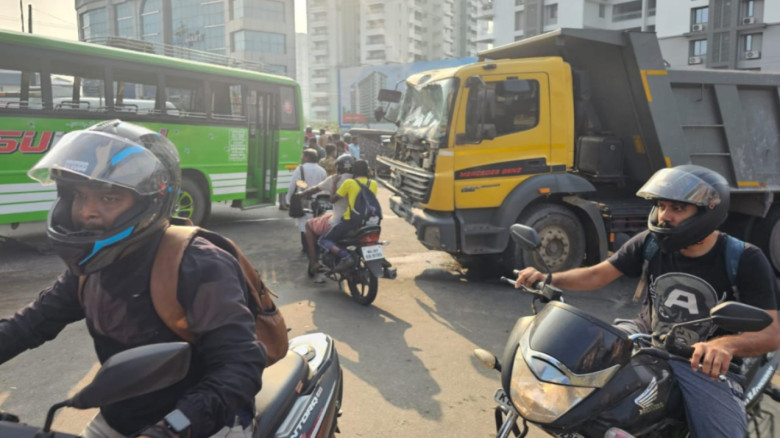 സ്വകാര്യ ബസും ടോറസ് ലോറിയും കൂട്ടിയിടിച്ച് ബസ് യാ...
