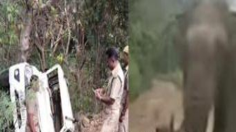ജീപ്പിനു നേരെ കാട്ടാന പാഞ്ഞടുത്തു; വാഹനം പത്തടി താ...