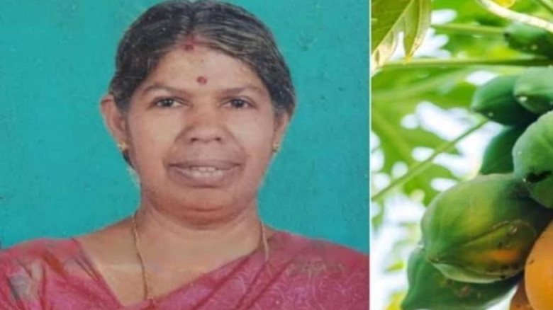 വീടിന്റെ ടെറസിൽ നിന്നും പപ്പായ പറിച്ച വീട്ടമ്മ കാൽ...