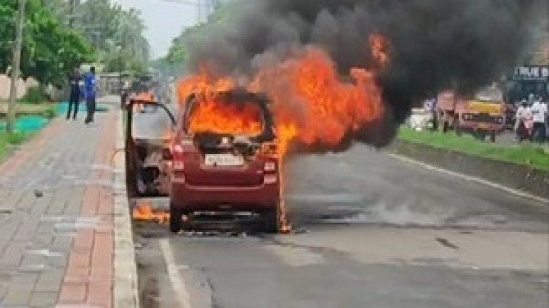 ഓടിക്കൊണ്ടിരുന്ന വാഗ്നർ കാറിന് തീ പിടിച്ച് ഒരാൾ മര...