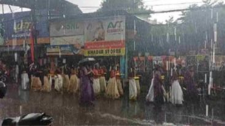 പെരുമഴയത്ത് ശിശുദിന റാലി, നനഞ്ഞു കുളിച്ച് 1500 ഓളം...