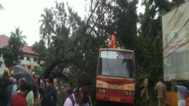 കെഎസ്ആർടിസി ബസിനു മുകളിലേക്ക് കൂറ്റൻ മരം കടപുഴകി വ...