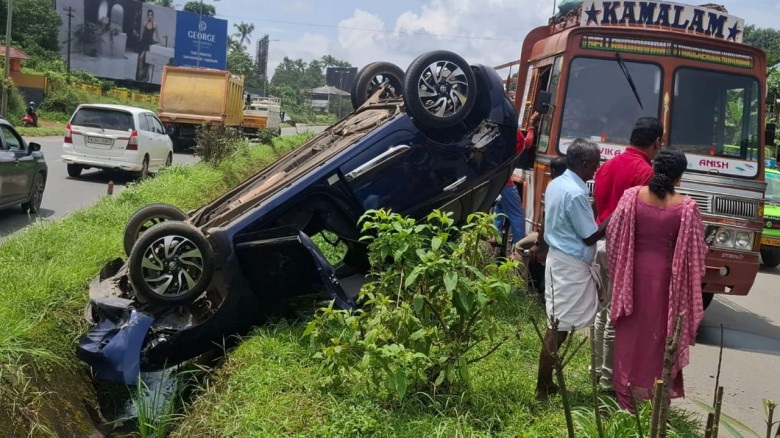 നിയന്ത്രണംവിട്ട കാര് ഡിവൈഡറിലേക്ക് മറിഞ്ഞു...