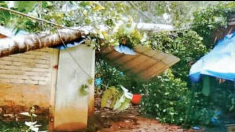 തെങ്ങുവീണ് വീടിന്റെ ഒരു ഭാഗം തകർന്നു...