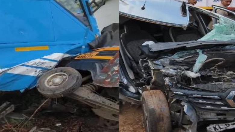 എടമുട്ടത്ത് ദേശീയ പാതയിൽ സ്വകാര്യ ബസും, കാറും, ഓട്...