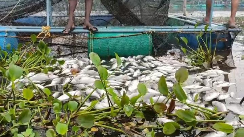 കനോലി കനാലിൽ കൂടു കെട്ടി വളർത്തിയിരുന്ന മത്സ്യങ്ങൾ...