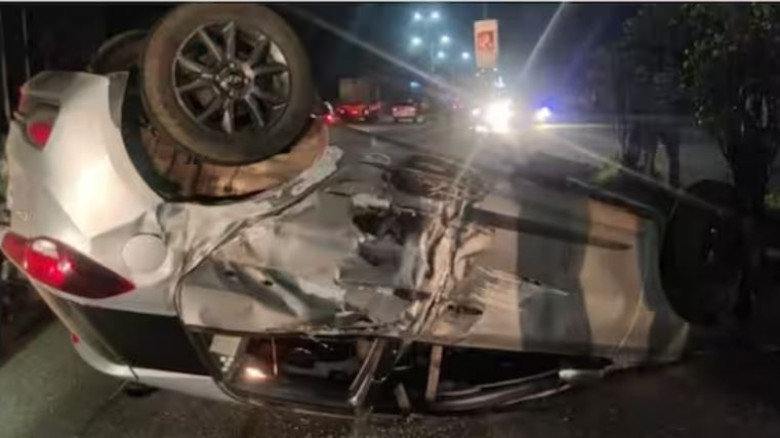 ദേശീയപാതയിൽ തല കീഴായി മറിഞ്ഞ് കാർ; അപകടത്തില് 21ക...