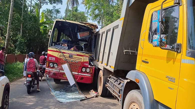 മാള കാവനാട് കെഎസ്ആർടിസി ബസ് നിർത്തിയിട്ട ടോറസ് ലോറ...