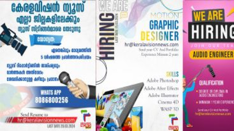 കേരളവിഷൻ ന്യൂസ് ചാനലിൽ ജോലി അവസരങ്ങൾ; വിവിധ വിഭാഗങ...