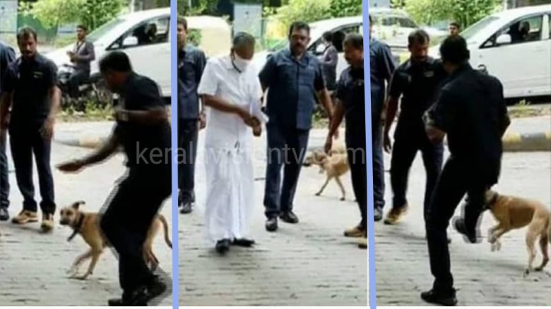 മുഖ്യമന്ത്രിയുടെ അടുത്തേക്ക് നായ, കാലുകൊണ്ട് ആട്ടി...